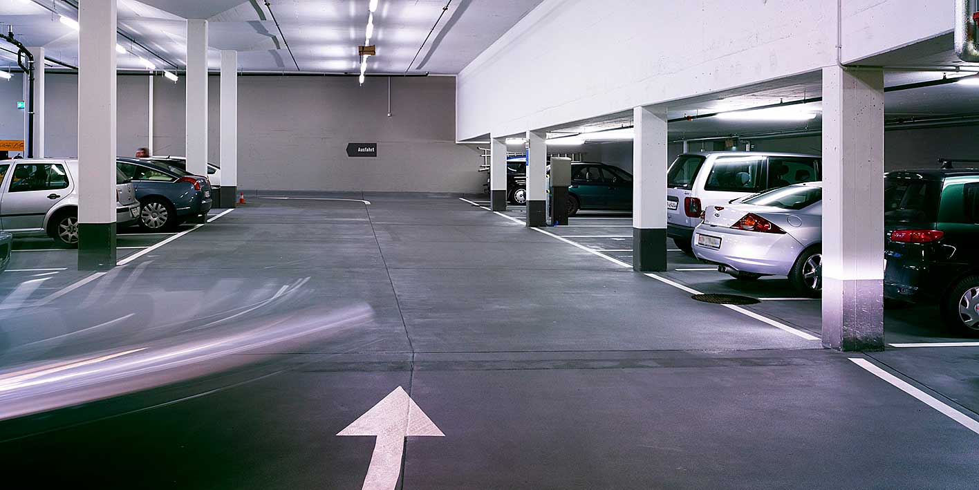 Parkplatz in der Einstellhalle im Zentrum für